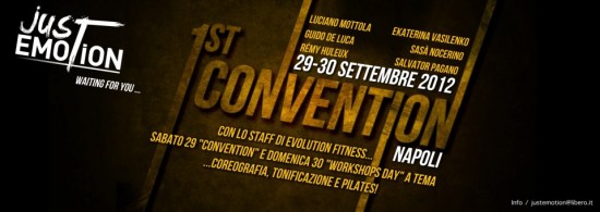 Sabato 29 e Domenica 30 Settembre sono state due giornate intermente dedicate al fitness e riservate ad appasionati  ed istruttori per un momento emozionante di incontro e formazione. Just Emotion è stato il primo evento organizzato dal collaudato staff formato da Salvatore Pagano, Salvatore Nocerino e Remy Huleux, affermati presenter internazionali e docenti, al quale seguirà calendario ricco di appuntamenti, formazione ed eventi.